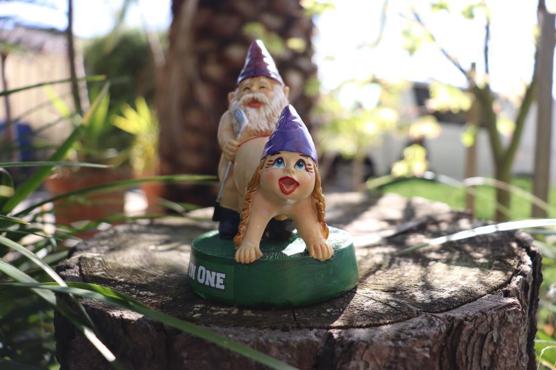 - Brighten up your garden decor with laughter, show your sense of humor and a hysterical fantasy add to your yard with this naughty gnomes statue.