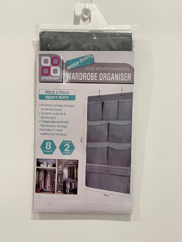 Enjoy additional wardrobe storage with our Boxsweden Mode Hanging Wardrobe Organiser. Fit extra storage in your wardrobe or hang our 8 Pocket Organiser on the back of the door with included hooks. Coming in two assorted colours, our design has multiple pockets for all your loose wardrobe storage! Carefully designed with durable non woven material to be lightweight and easily stored away when not in use with our collapsible and foldable construction.