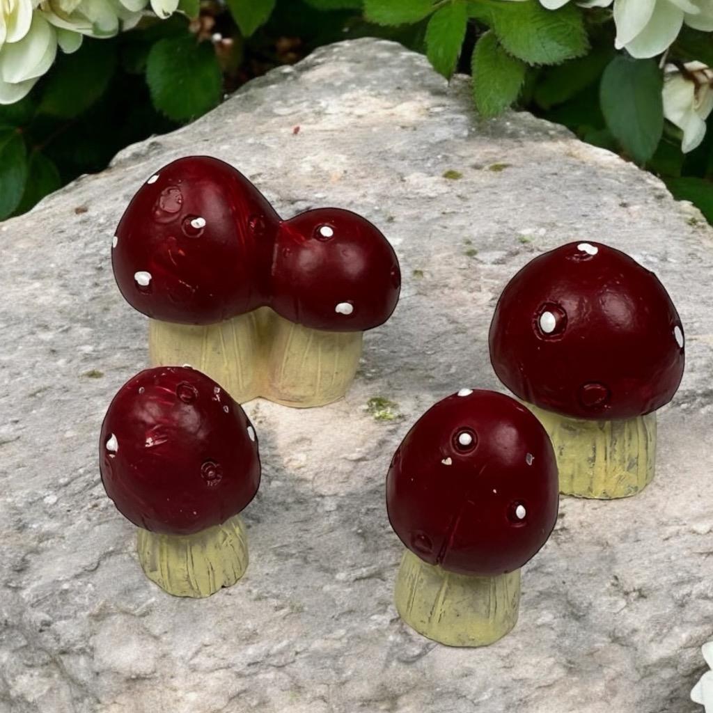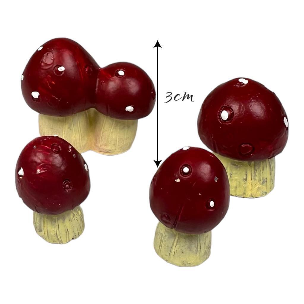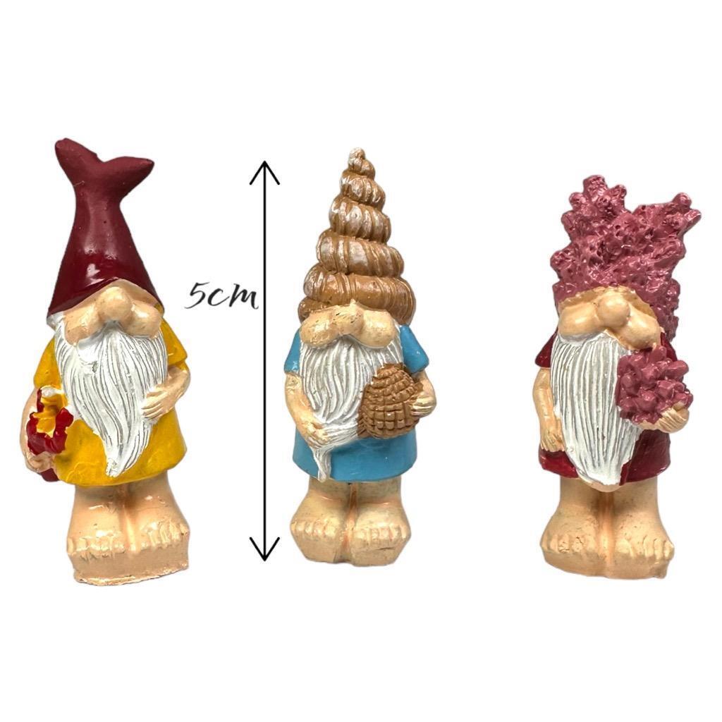 - Dimensions:Â Gnomes approx 5x2x1.7cm; Mushrooms 2.5-4cm tall and 1.5-3.2cm wide