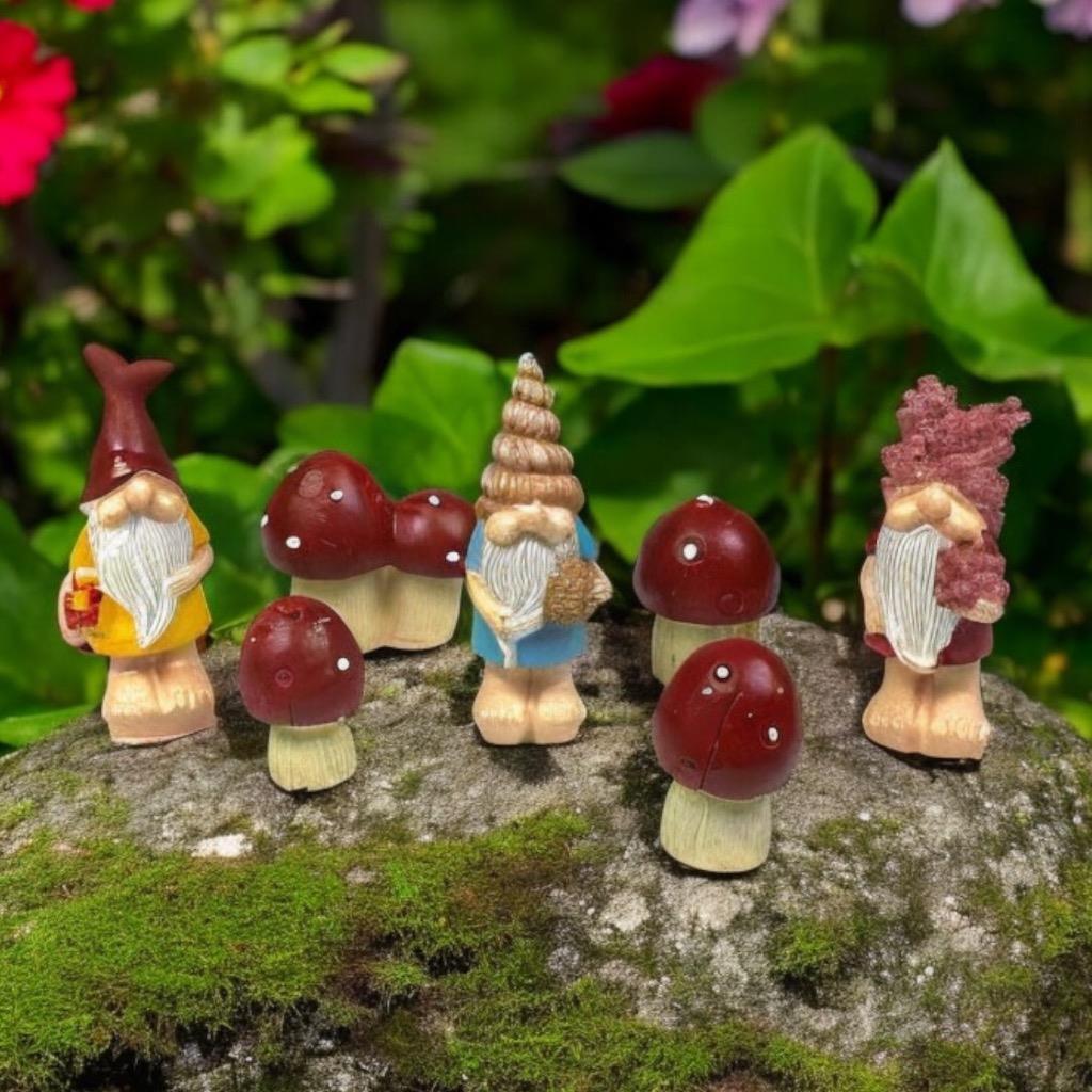 Miniature Garden Gnomes & Mushrooms Figurine Set â Perfect for Fairy Gardens & Decorations â 7 Pieces