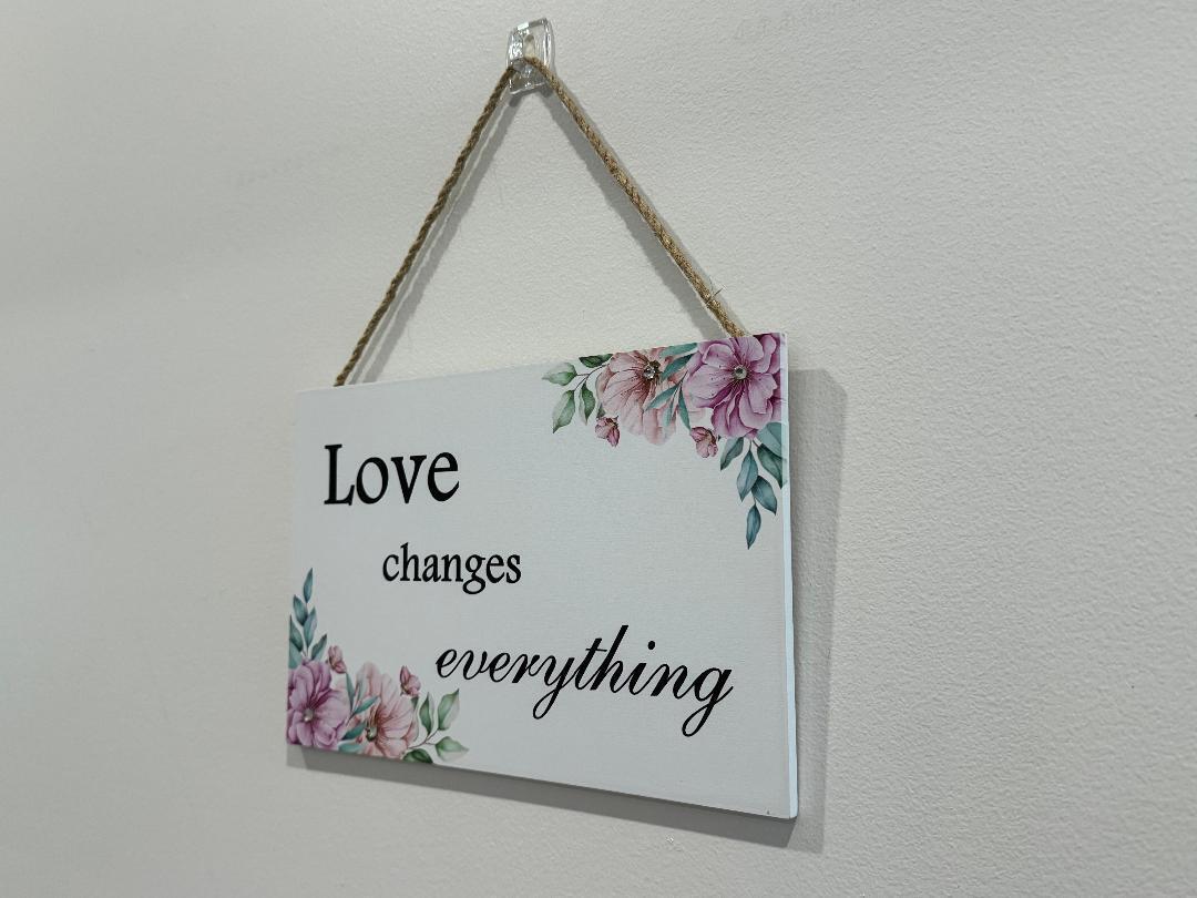 Wooden Home Sign Wall Decor 'Love changes everything' Hanging Country Signs